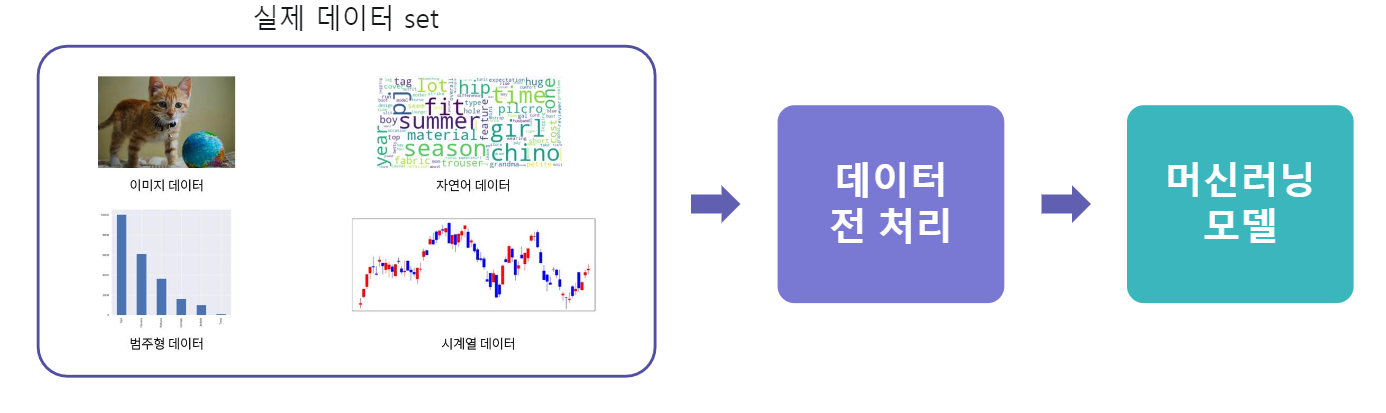 실제 학습에 사용되는 데이터 셋은 이미지, 자연어, 범주형, 시계열 등 다양한 데이터 형태를 가지고 있다.