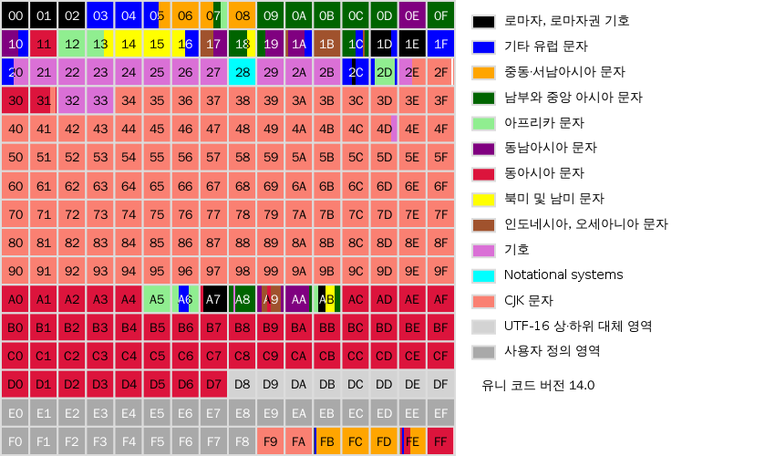 [0번] 유니코드 기본평면 (BMP : Basic Multilingual Plane)